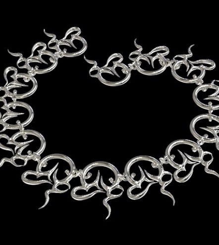 Sterling silver necklace with pliqué-a-jour and cloisonné enameling techniques, inspired by architecture of gothic cathedrals.
